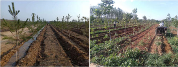 養(yǎng)護(hù)期的主要任務(wù)是澆水、除草、打藥及除蘗,養(yǎng)護(hù)期工作對新造林的成材極為重要,尤其前兩年的養(yǎng)護(hù)對人工林的整體成活率起著決定性作用。